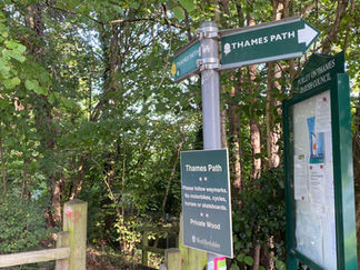 The path was now in a wood called Hartslock Wood and was slowly descending back down to the level of the river. With the leaves on the trees starting to change colour this was a really pleasant part of the walk. Gradually I could see glimpses of the river through the trees as the path descended. About now I passed a pillbox by the side of the river. This was the first one I had noticed and would be the first of many I would pass for the rest of my journey along the Thames Path. Pillboxes were part of the country’s last line of defence in WWII in the event of a German invasion and were built in 1940. They were made of thick, reinforced concrete. Thankfully, they were never needed. About 6500 still remain in the UK. The origin of their nickname is disputed; some say their shape is similar to the boxes pills used to be dispensed in, whilst others say it’s linked to the letter slot on a pillar box.